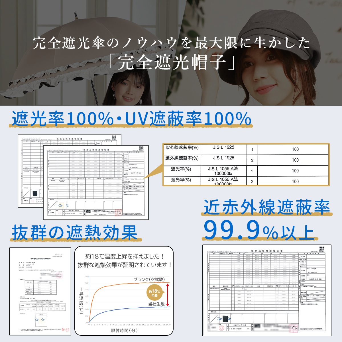 ※日本繊維製品品質技術センターにおいて「遮光率100%」「UVカット率100%」「UPF50+」「遮熱効果」と証明済み