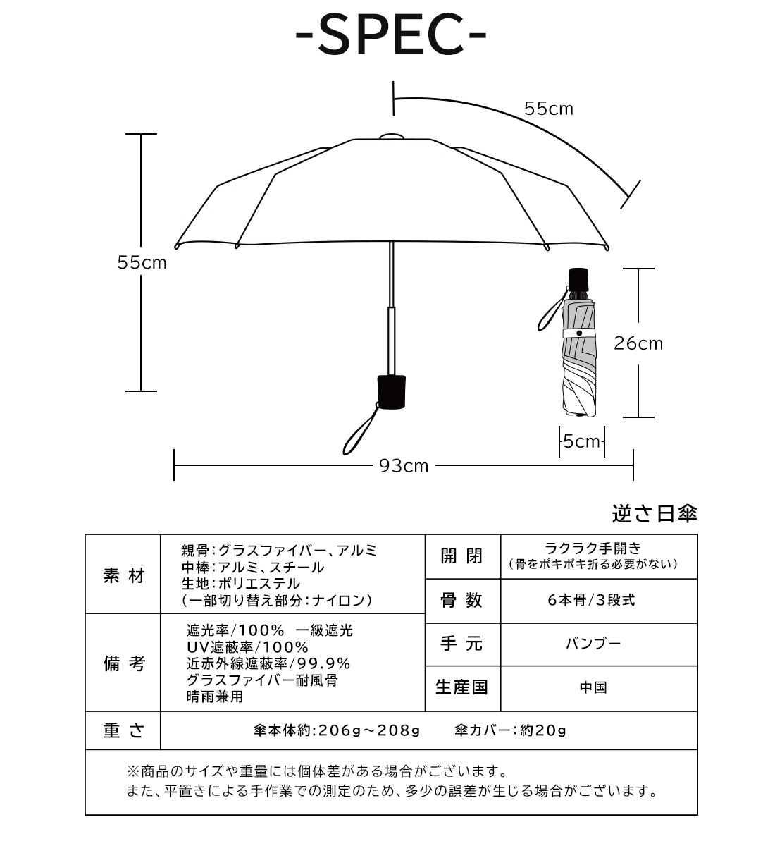 【2026新色】超軽量カーボン日傘 晴雨兼用 5本骨 U.Light~airy classic~
