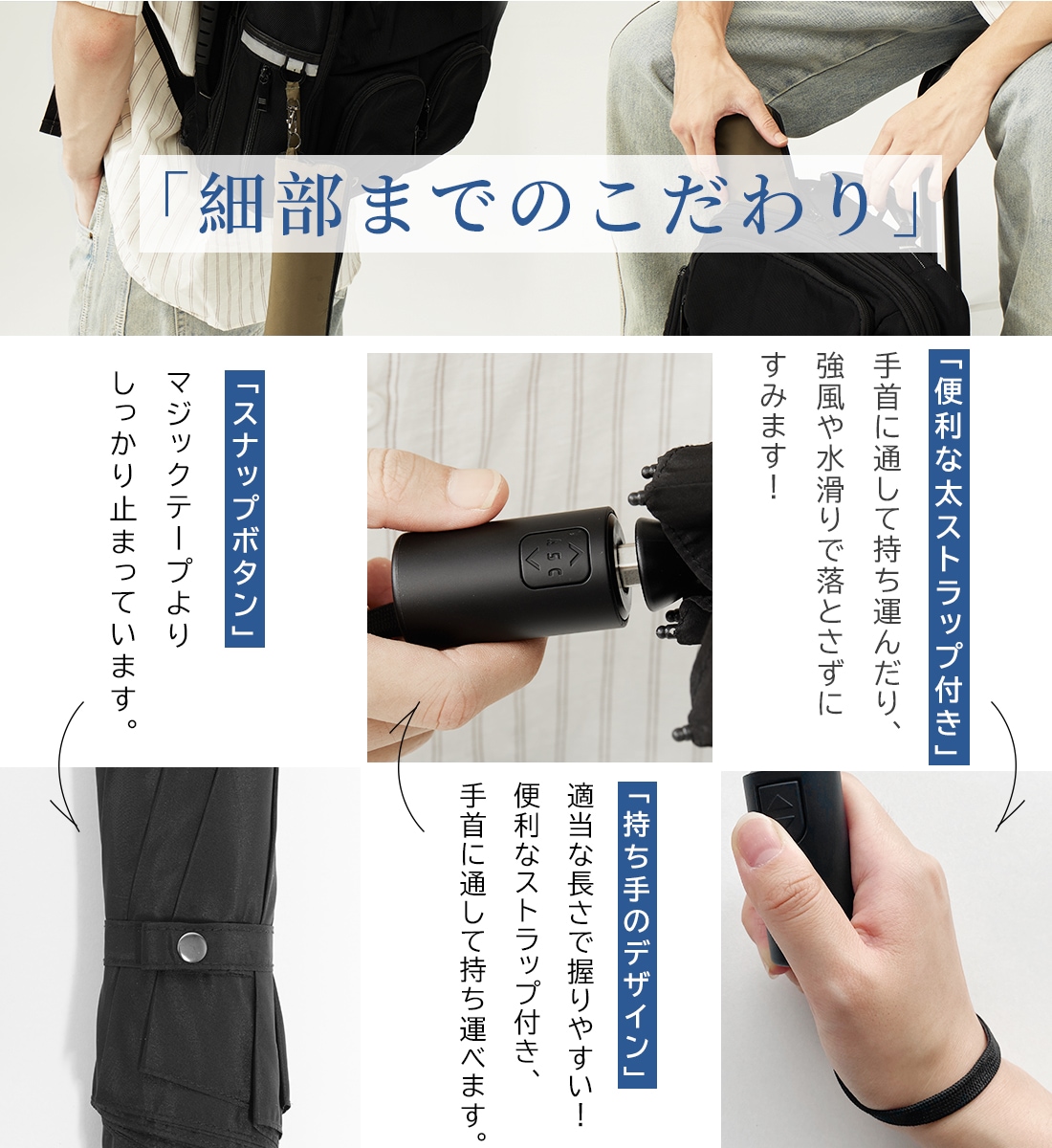 そのため、水切れがとても良く、傘を差した後は軽く振っていただくだけで水気が飛び、カバンにも気楽にしまうことが可能。