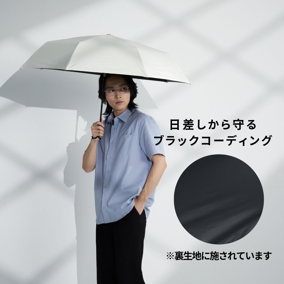 上からのUV反射カット、裏側は地面や壁面からの照り返しからお肌や目への反射をカットします。