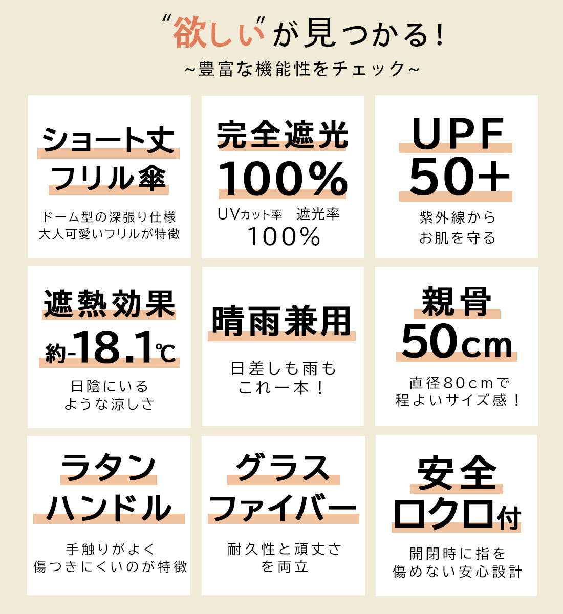 【2026新作】プリーツフリル ショート丈 晴雨兼用傘 50cm 日傘 雨傘~frillia~