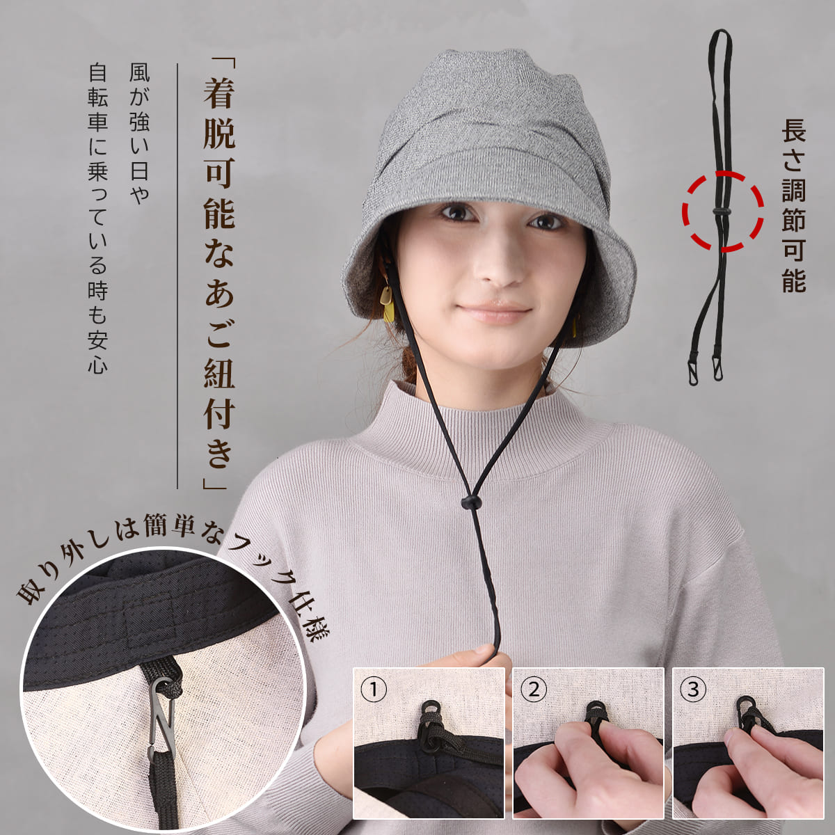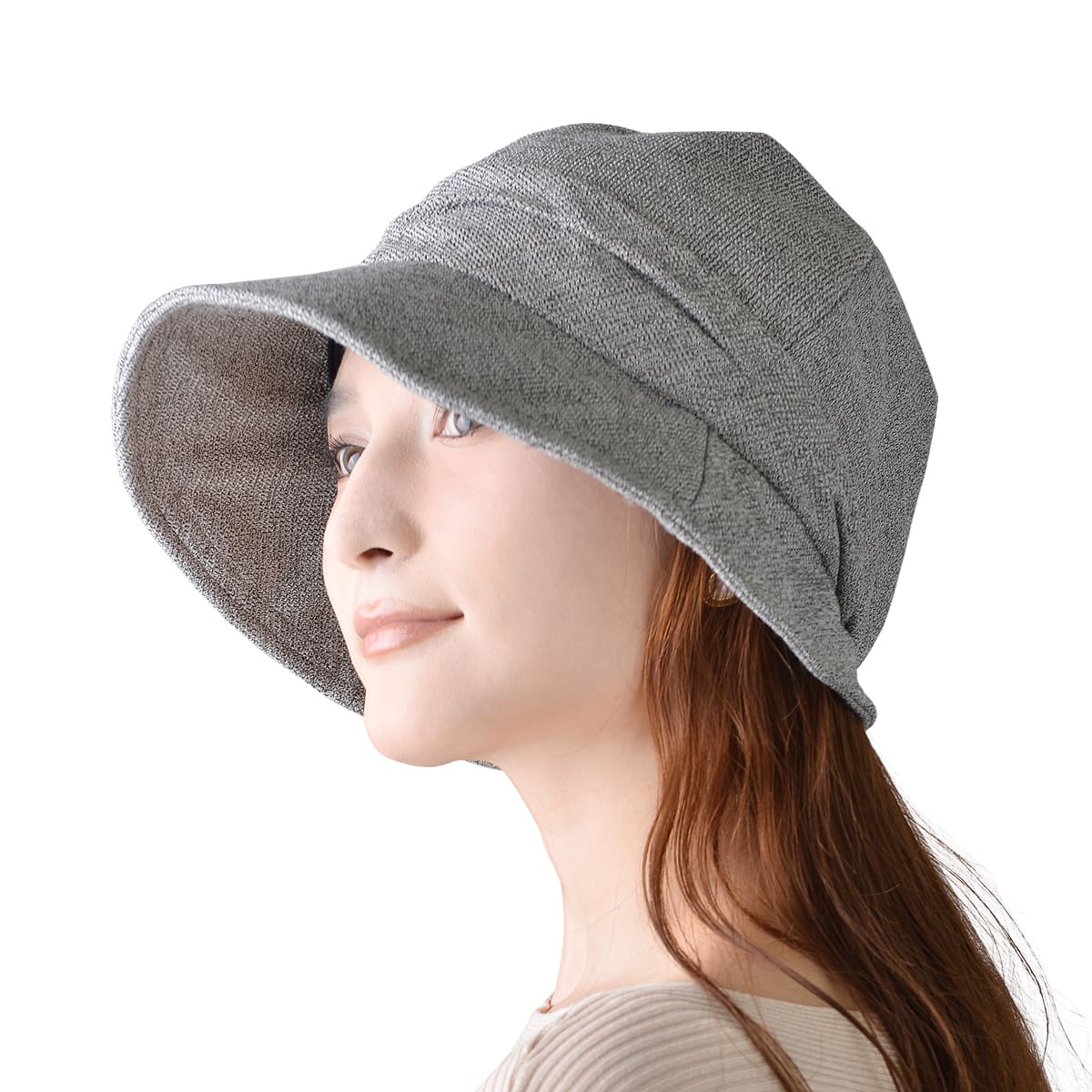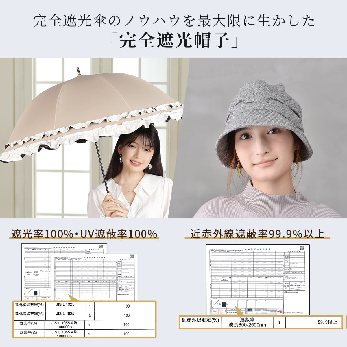 帽子のつば部分の中には弊社完全遮光日傘生地と同じ素材(※)を使用しております。被るだけで簡単にUV対策!