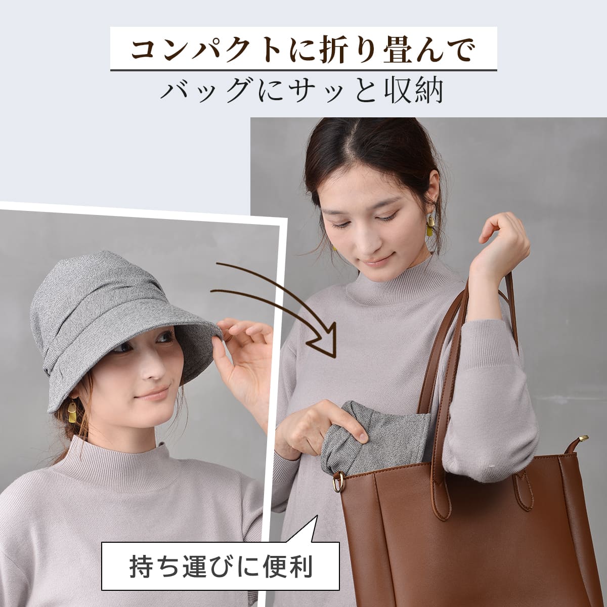 コンパクトに折り畳んでバッグにサッと収納!被らない時も邪魔にならないので、旅行やお出かけなど様々な場面に大変便利です。