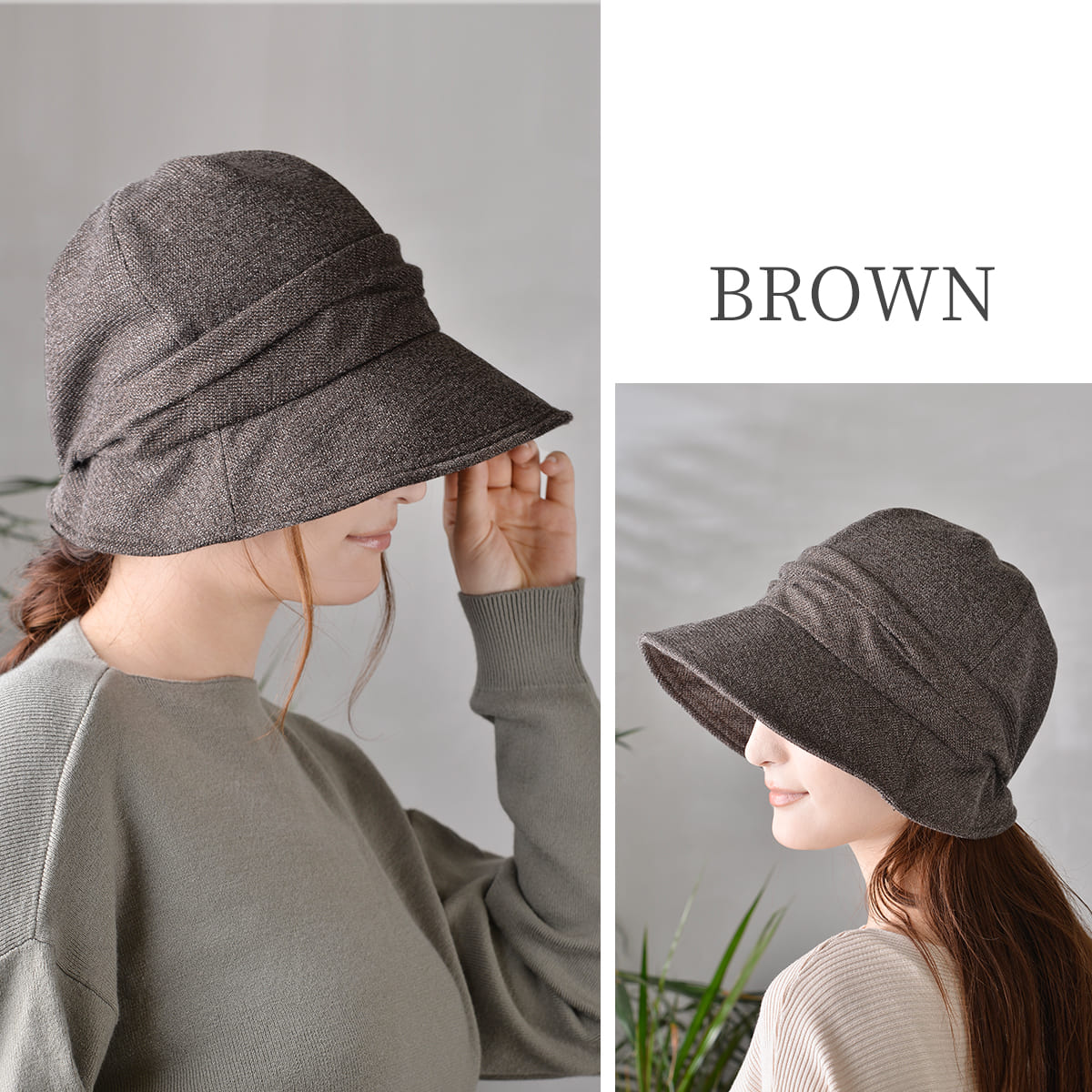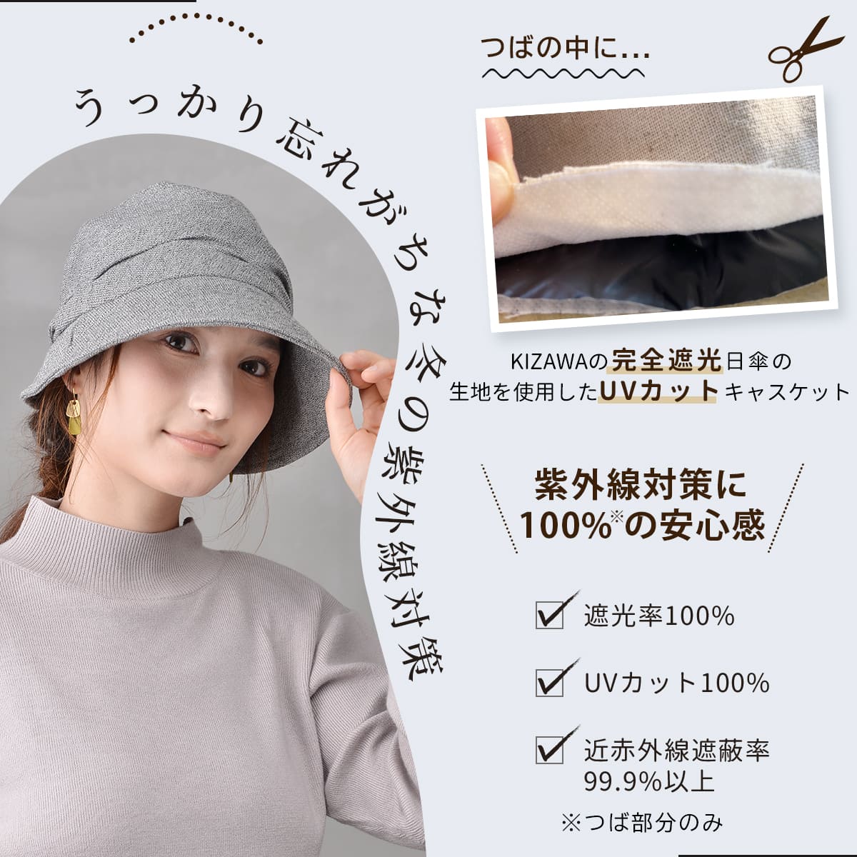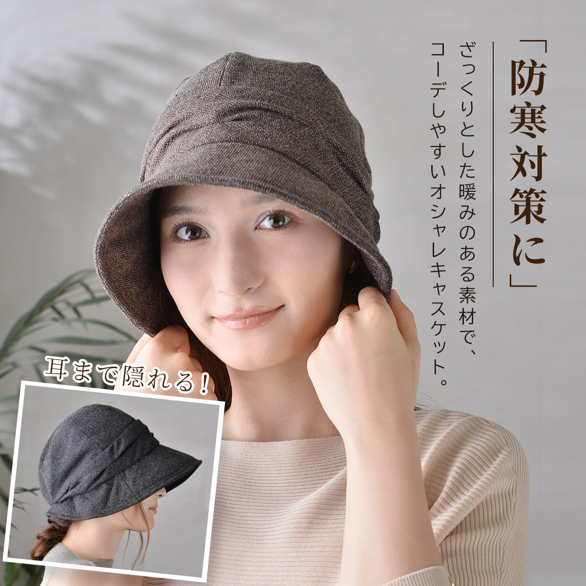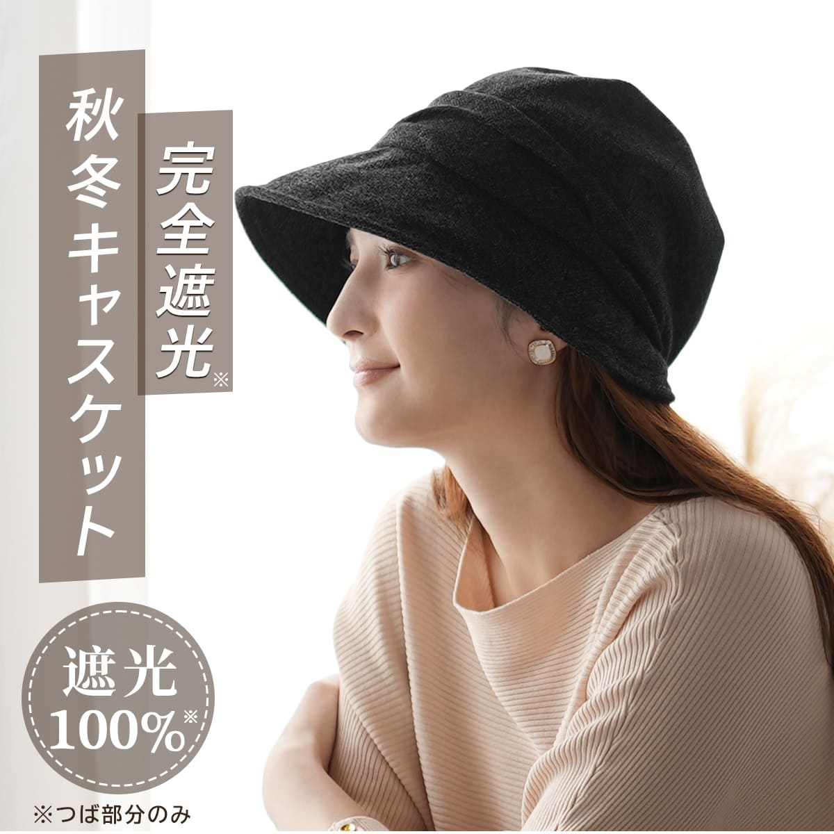 紫外線は365日降り注いでいるからこそ!秋冬にも紫外線対策を怠らず、つば広キャスケットを被ってお肌のケアを。