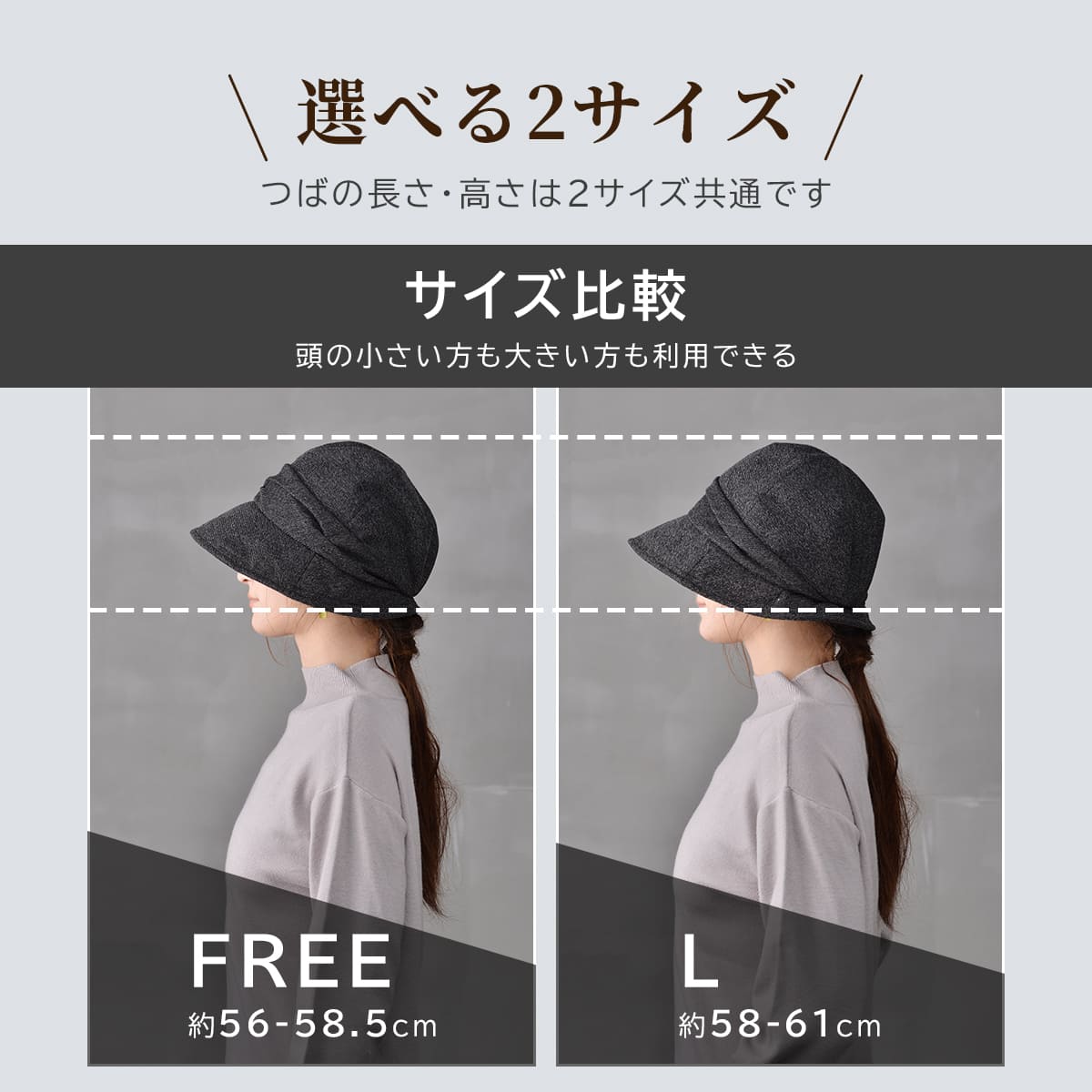 FREE、Lと二つのサイズを展開しております。また、サイズが大きい場合は、後頭部のマジックテープで約3cmほど短く調整できます。好みのフィット感で快適にかぶれます!