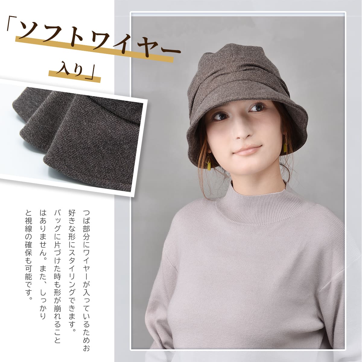 つば部分にワイヤーが入っているためお好きな形にスタイリングできます。バッグに片づけた時も形が崩れることはありません。自分の好みに合わせて調整し、おしゃれなシルエットを楽しめます。