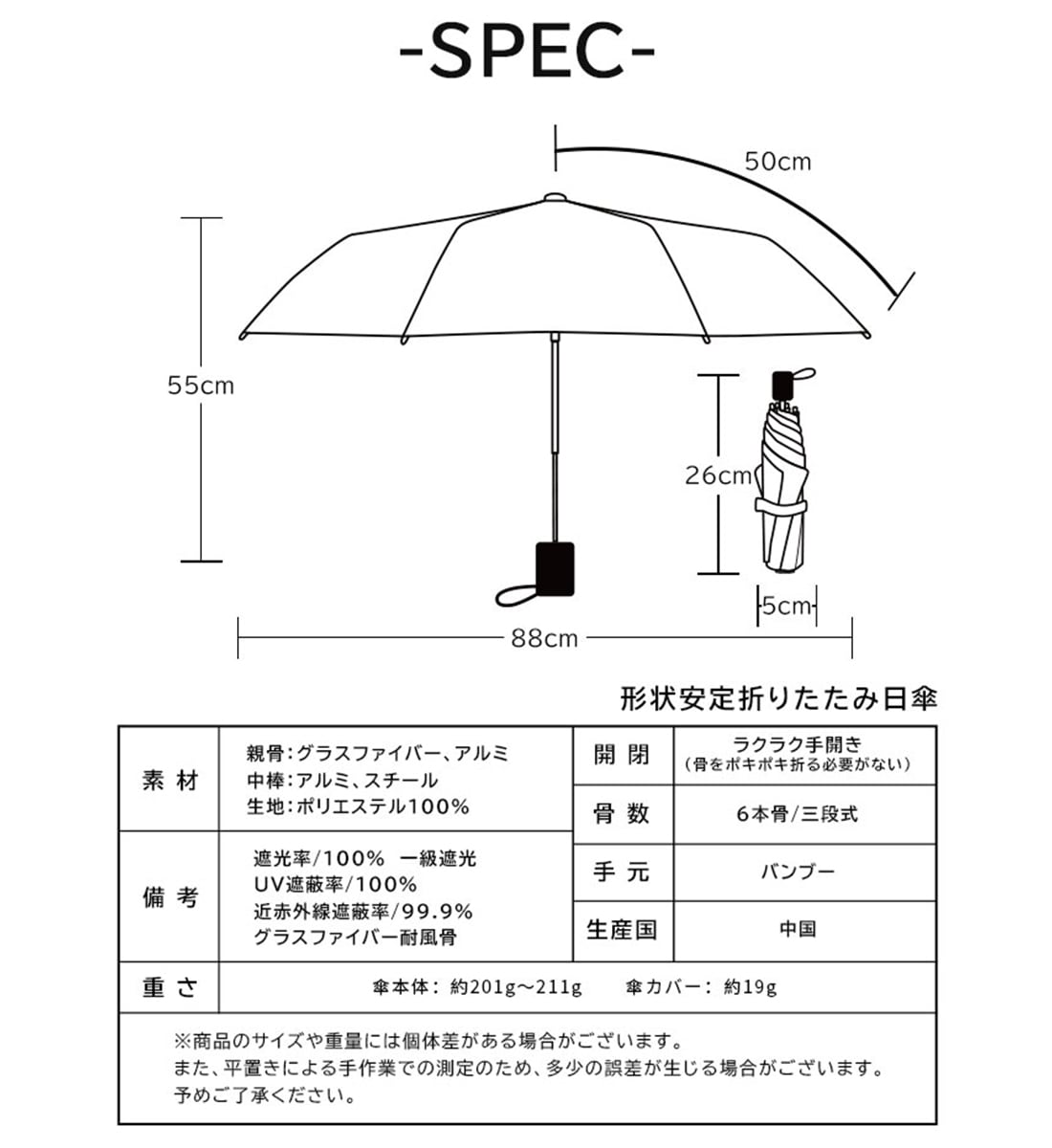 畳みやすい形状安定 折りたたみ日傘 Selfold~mono~