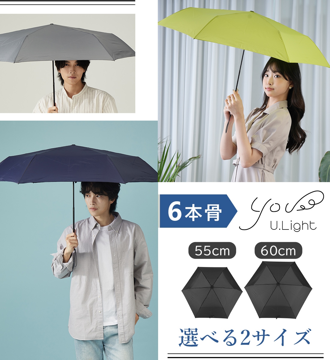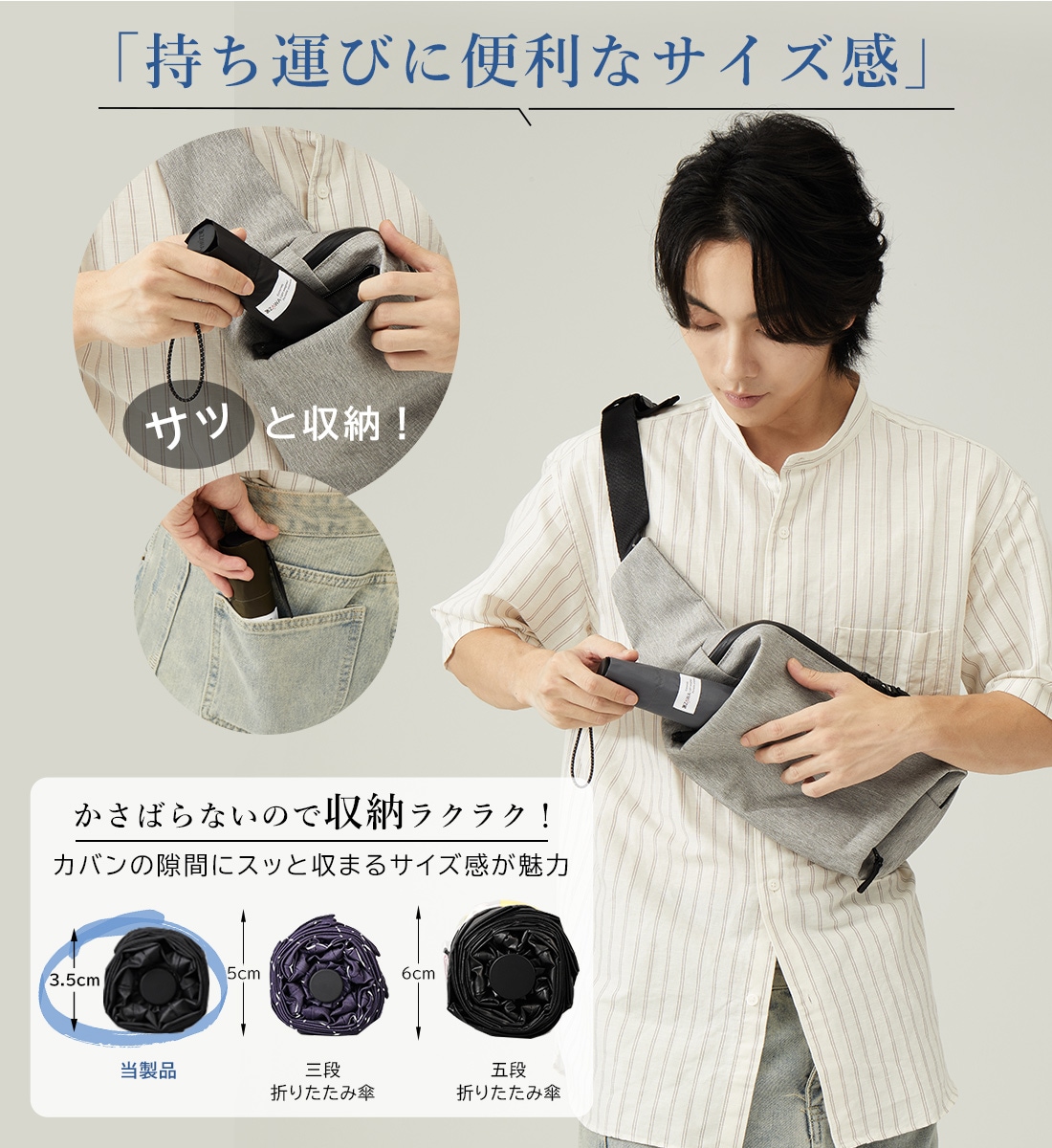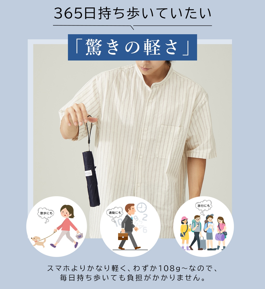 3秒で畳める 雨傘 形状安定 折りたたみ傘 軽量 6本骨 直径108cm Selfold~wisp~