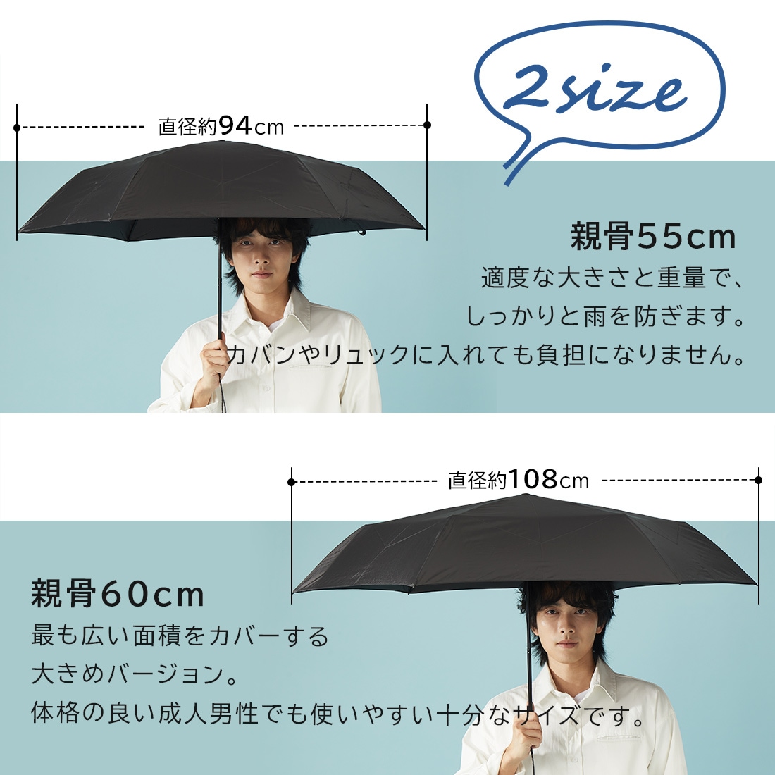 3秒で畳める 雨傘 形状安定 折りたたみ傘 大きい 8本骨 直径114cm Selfold~wisp+~