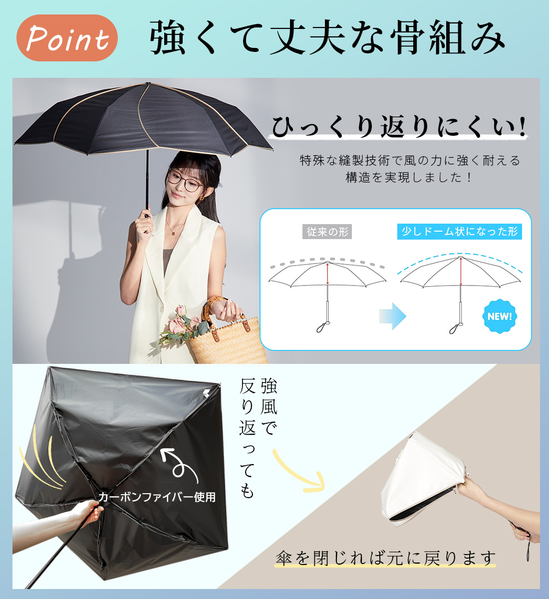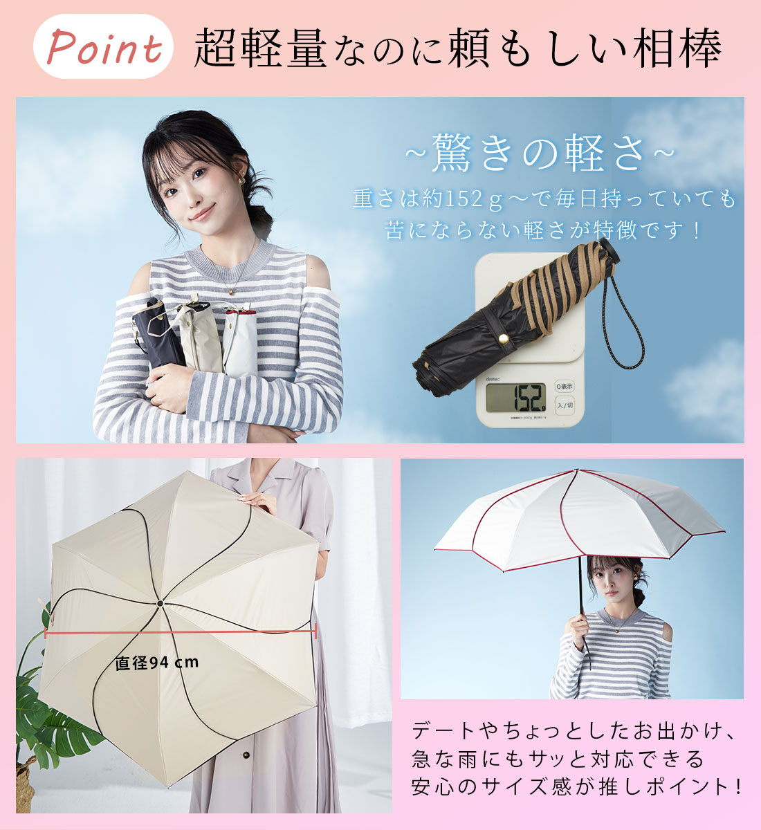 【2026新色】ひっくり返りにくい 超軽量 日傘 折りたたみ 晴雨兼用 U.Light~airia lumi~