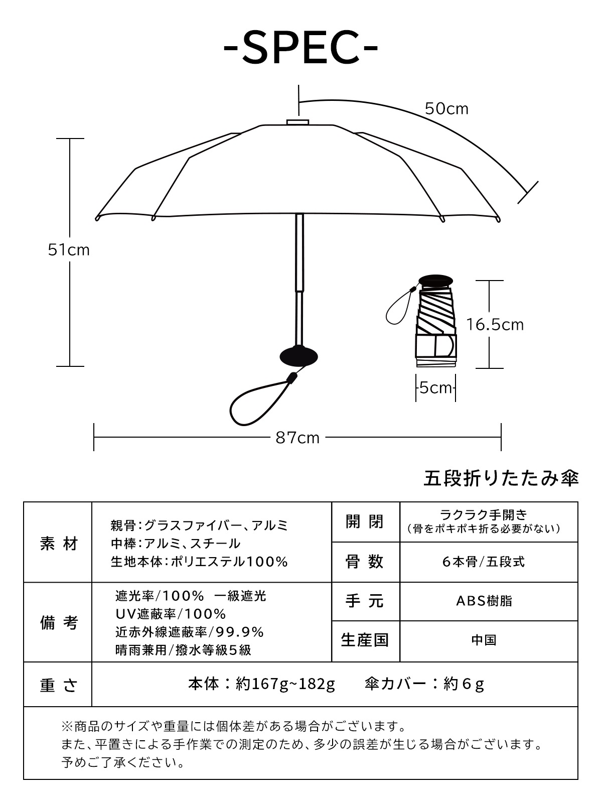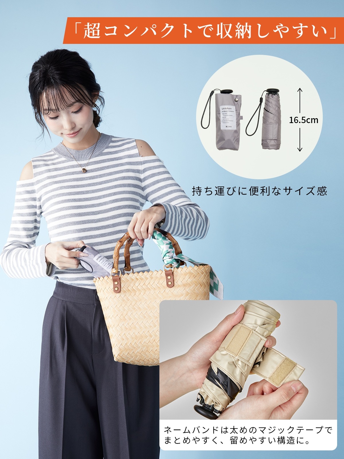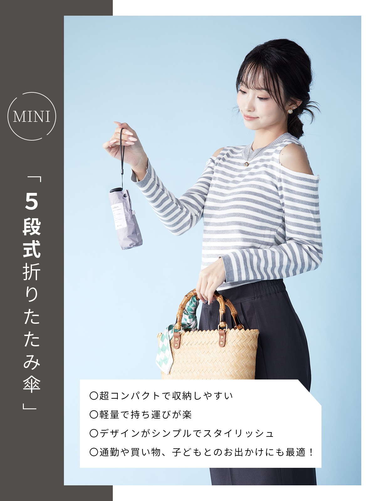 ミニ日傘は、進化した5段式のデザインで、驚くほどコンパクトに収納できます。