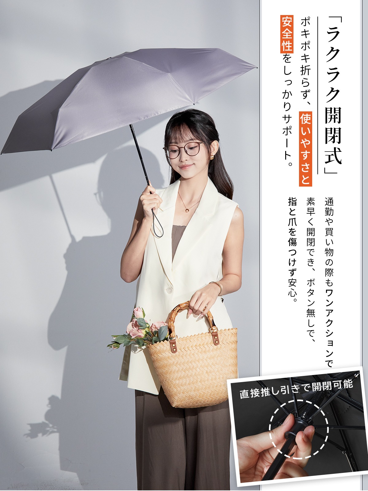 ポキポキ折らず、使いやすさと安全性をしっかりサポート。通勤や買い物の際もワンアクションで素早く開閉できます!