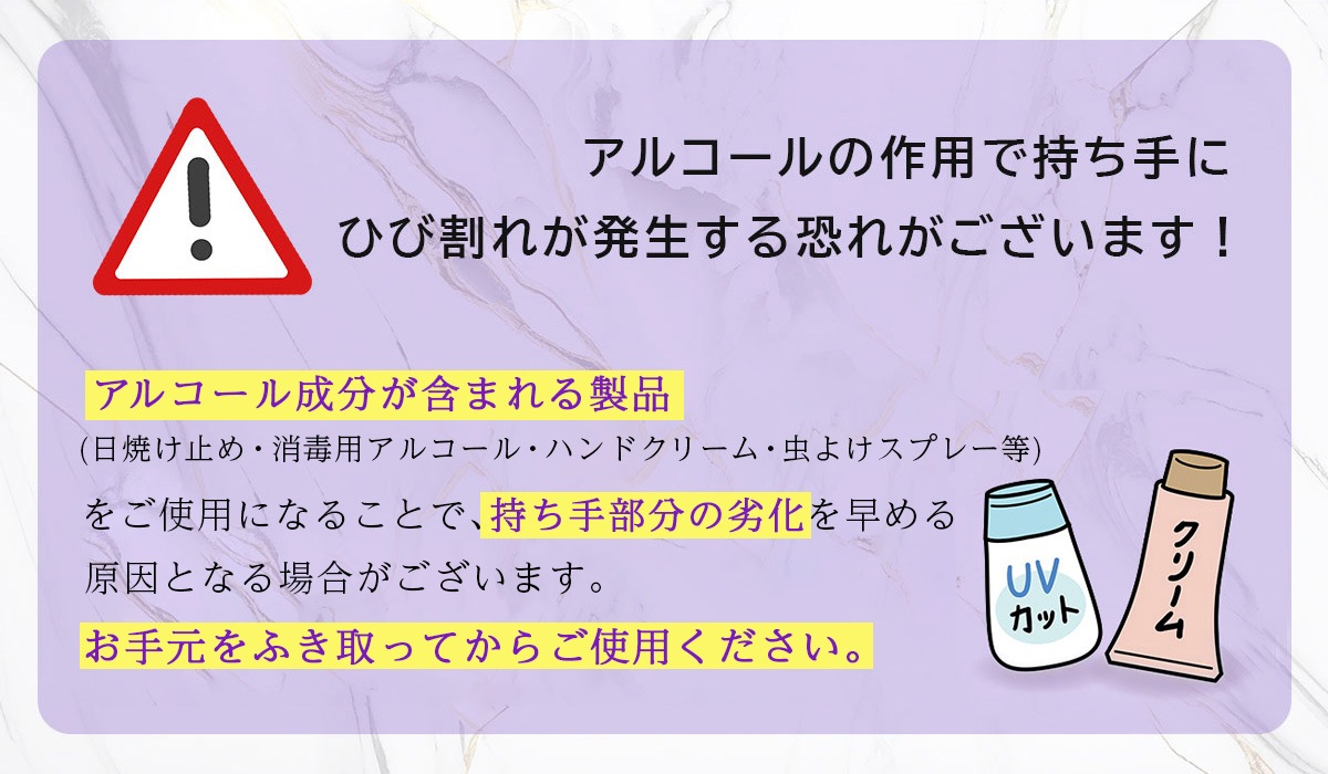 撥水加工は施されておりますが、生地の特性上、水をはじく効果が強くありません。一時的な水しのぎには対応できますが、雨傘としてのご使用は推奨しておりません。