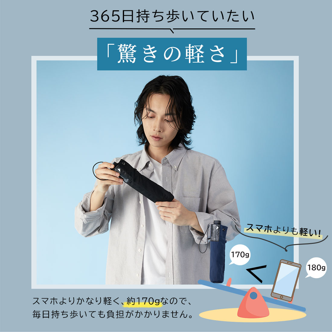 そのため、水切れがとても良く、傘を差した後は軽く振っていただくだけで水気が飛び、カバンにも気楽にしまうことが可能。