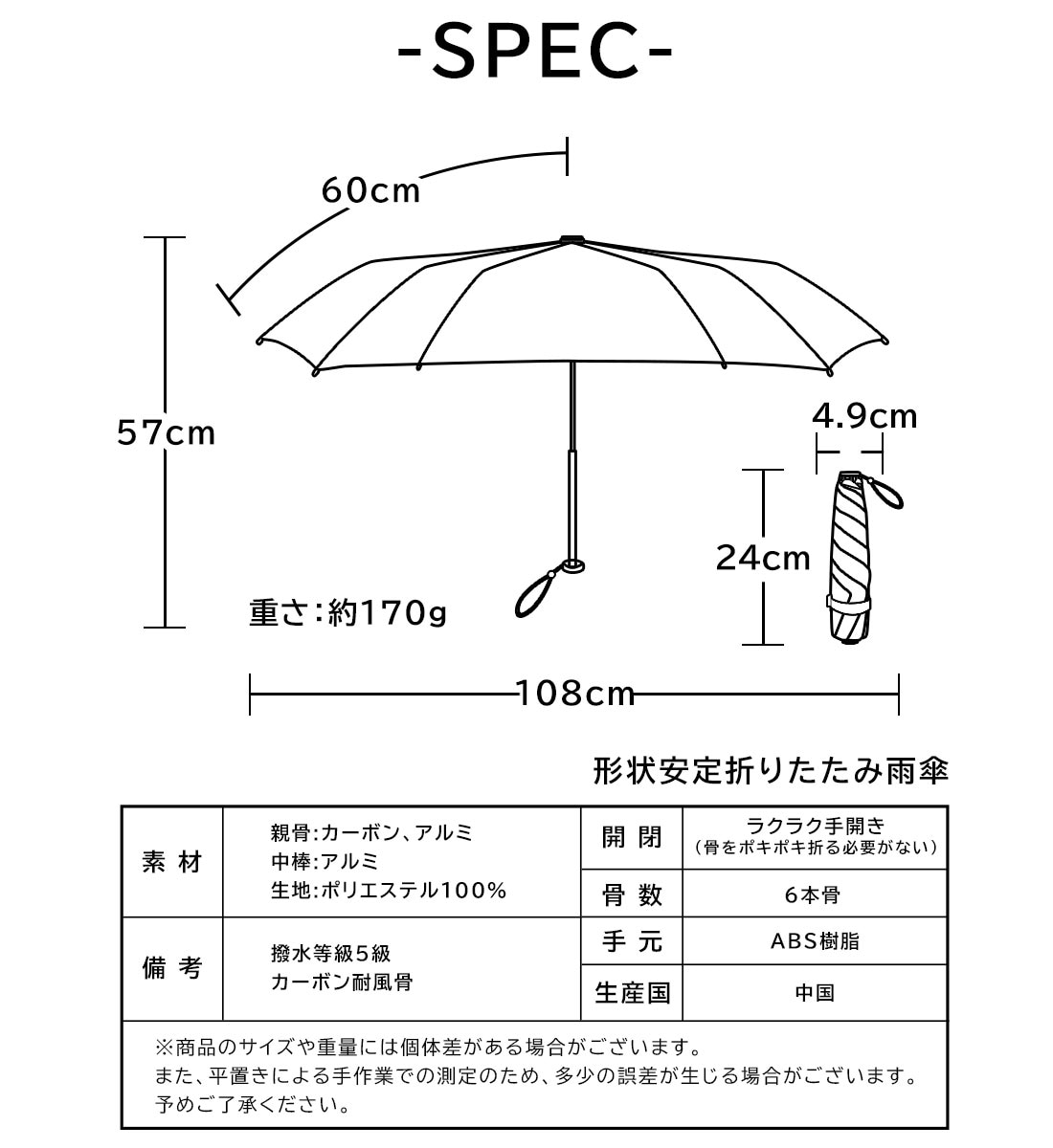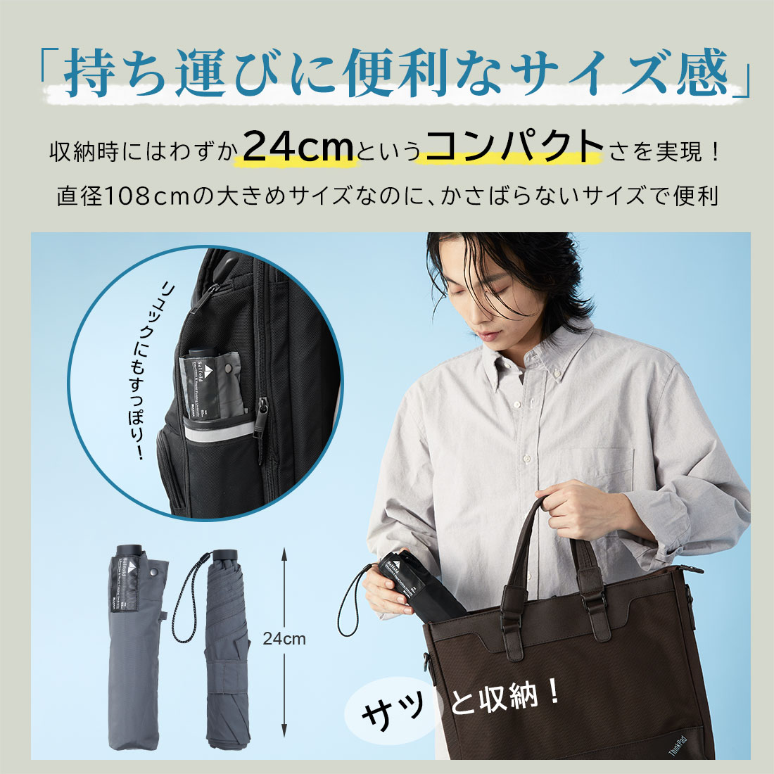 折りたたむ時の長さは24cm。カバンに入れてもかさばらないサイズで急な雨に降られても安心です。