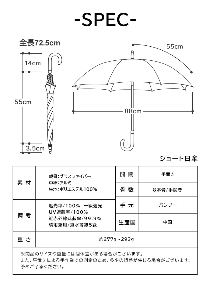 バンブー ショート丈 晴雨兼用傘 50cm 日傘 雨傘~ithm 3色MIX~