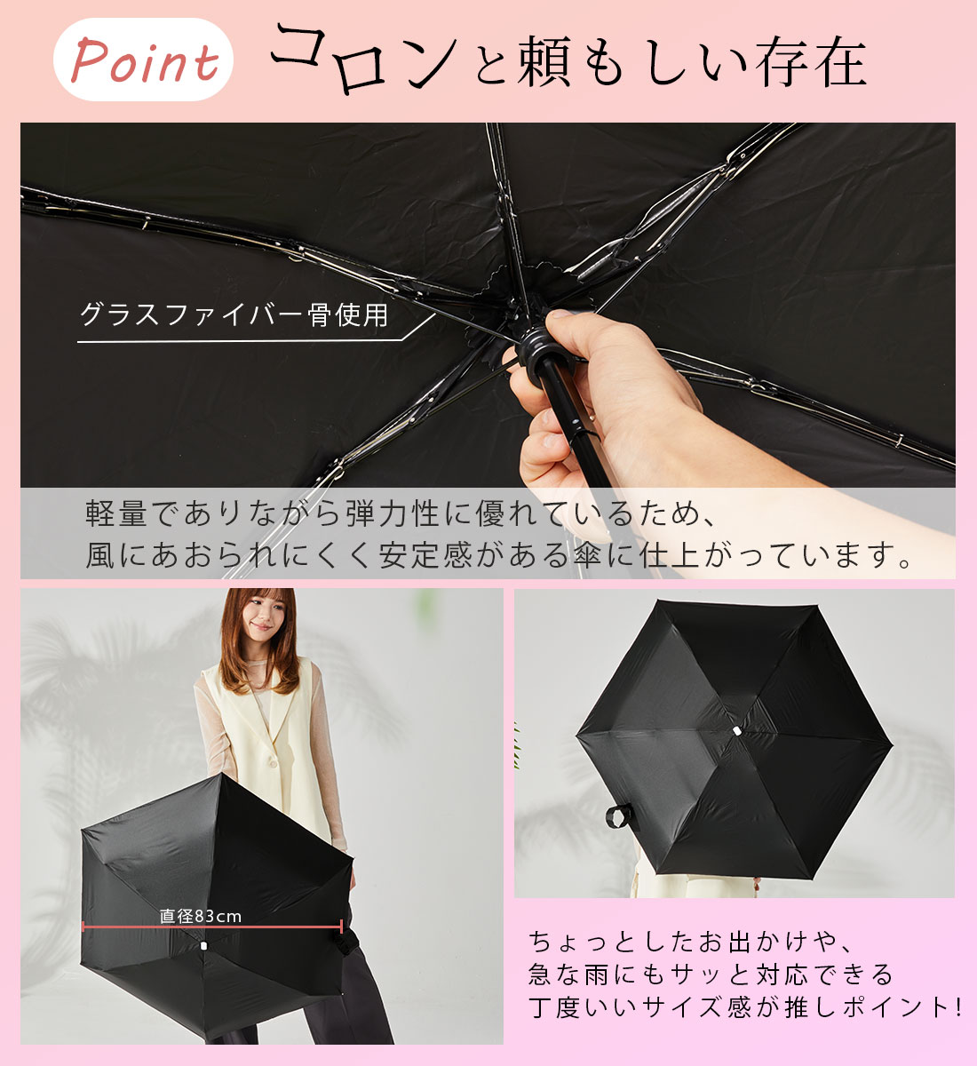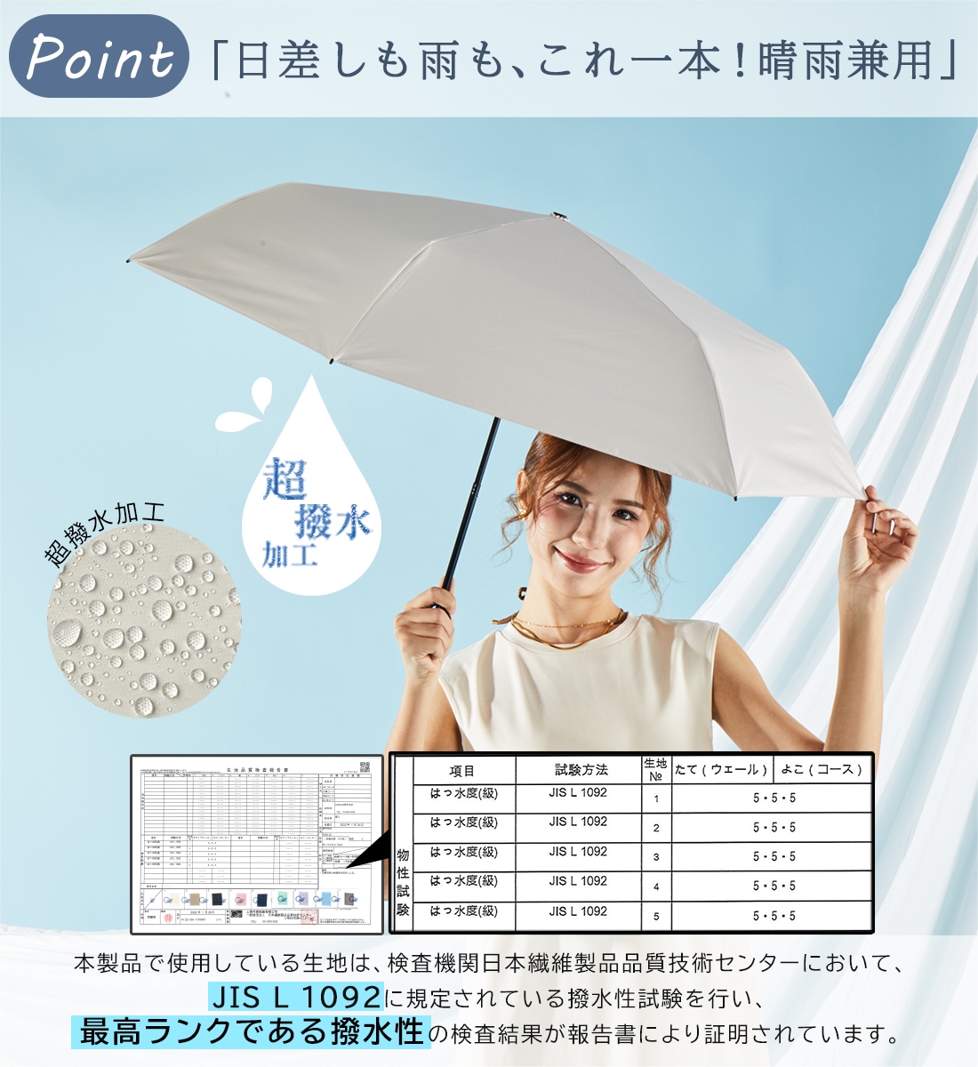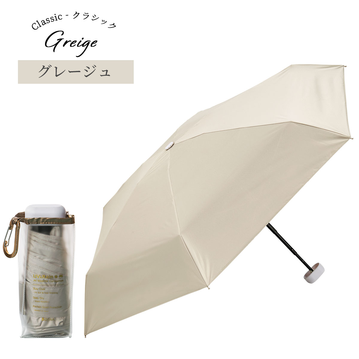 【2026新色】超軽量カーボン日傘 晴雨兼用 5本骨 U.Light~airy classic~