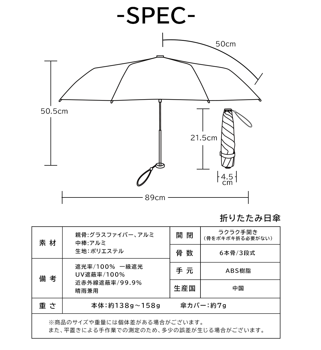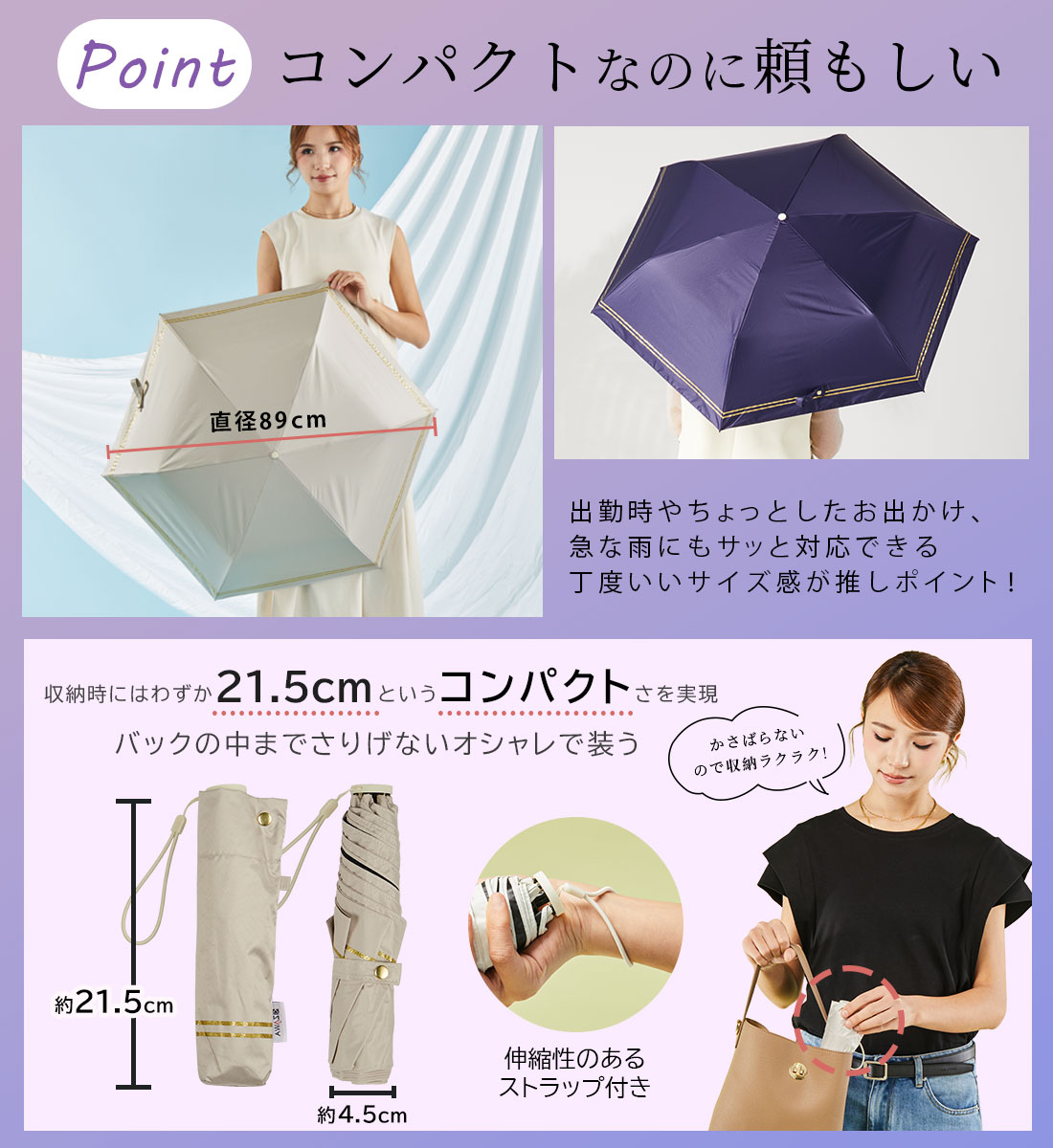 【2026新色】超軽量カーボン日傘 晴雨兼用 5本骨 U.Light~airy classic~