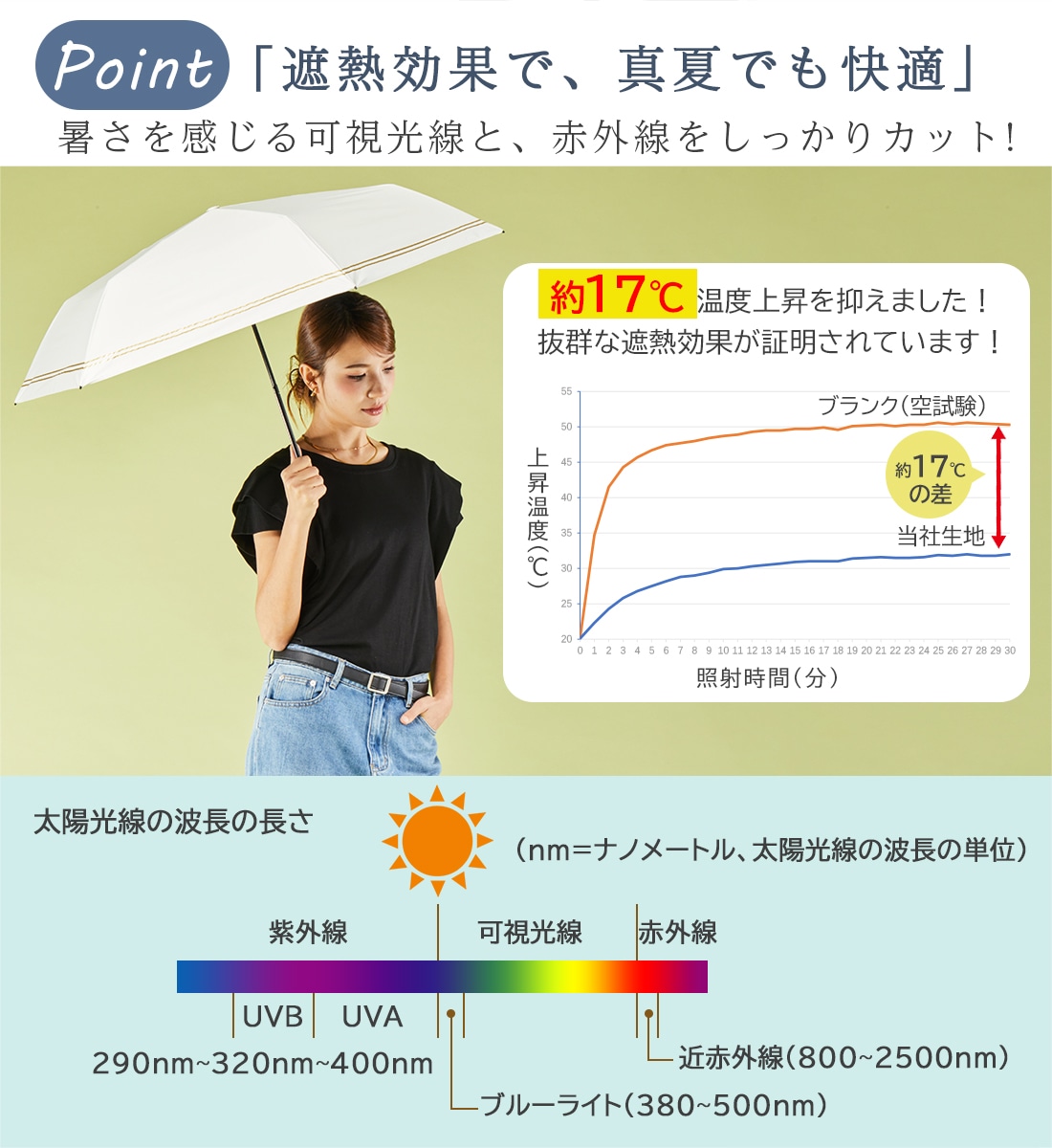【2026新色】超軽量カーボン日傘 晴雨兼用 5本骨 U.Light~airy bicolor~