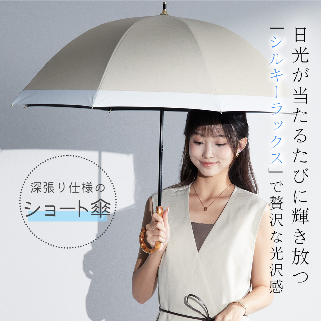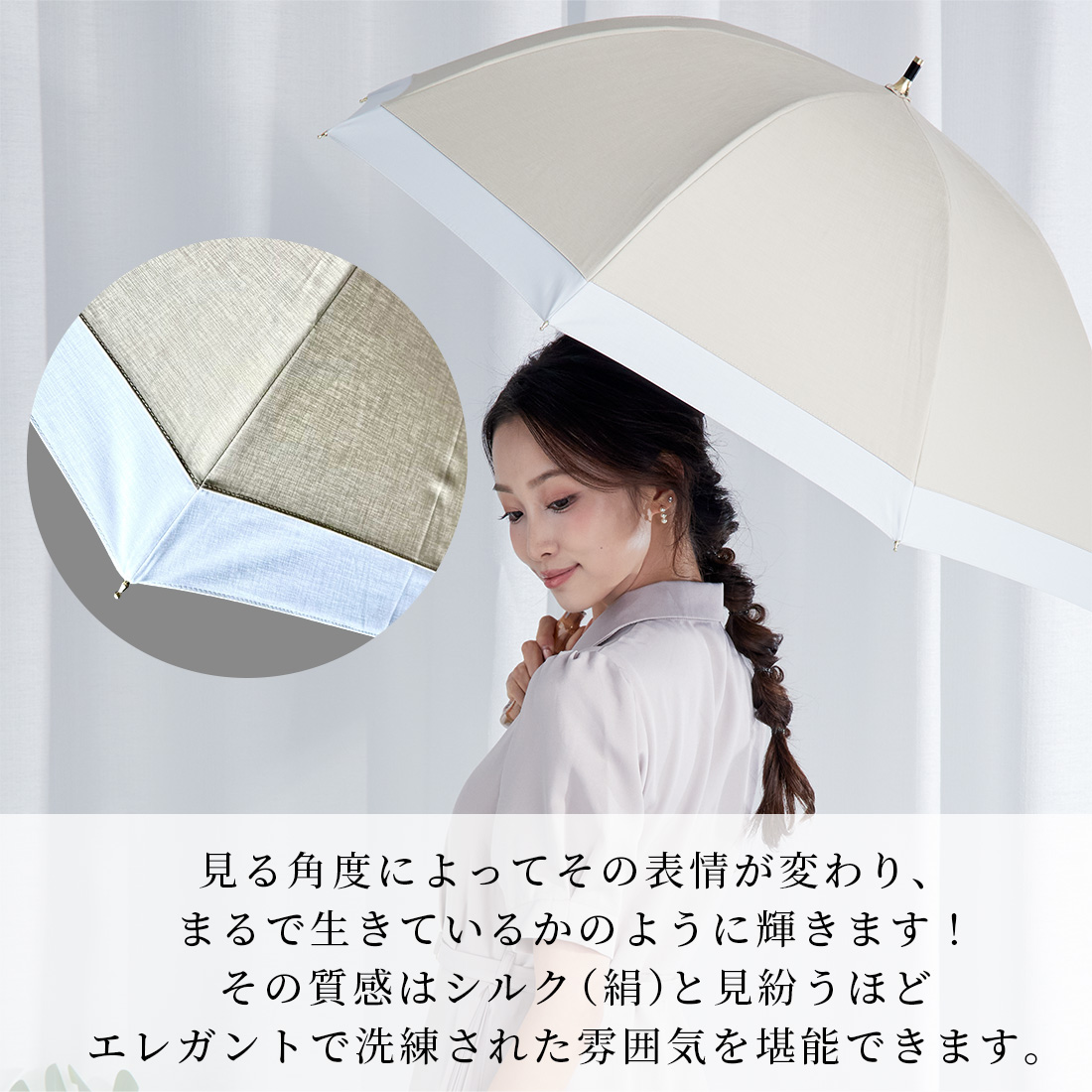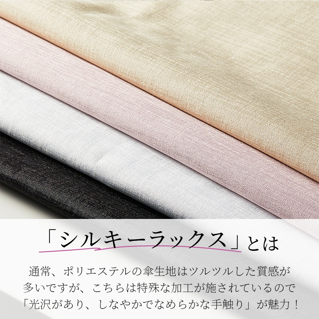 通常、ポリエステルの傘生地はツルツルした質感が多いですが、こちらは特殊な加工が施されているので「光沢があり、しなやかでなめらかな手触り」が魅力です!