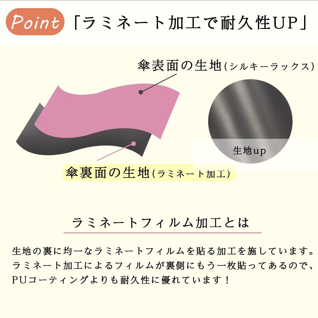 ラミネート加工でより良い触り心地としっかりとした質感を実現し、従来の日傘より耐久性が向上しています!