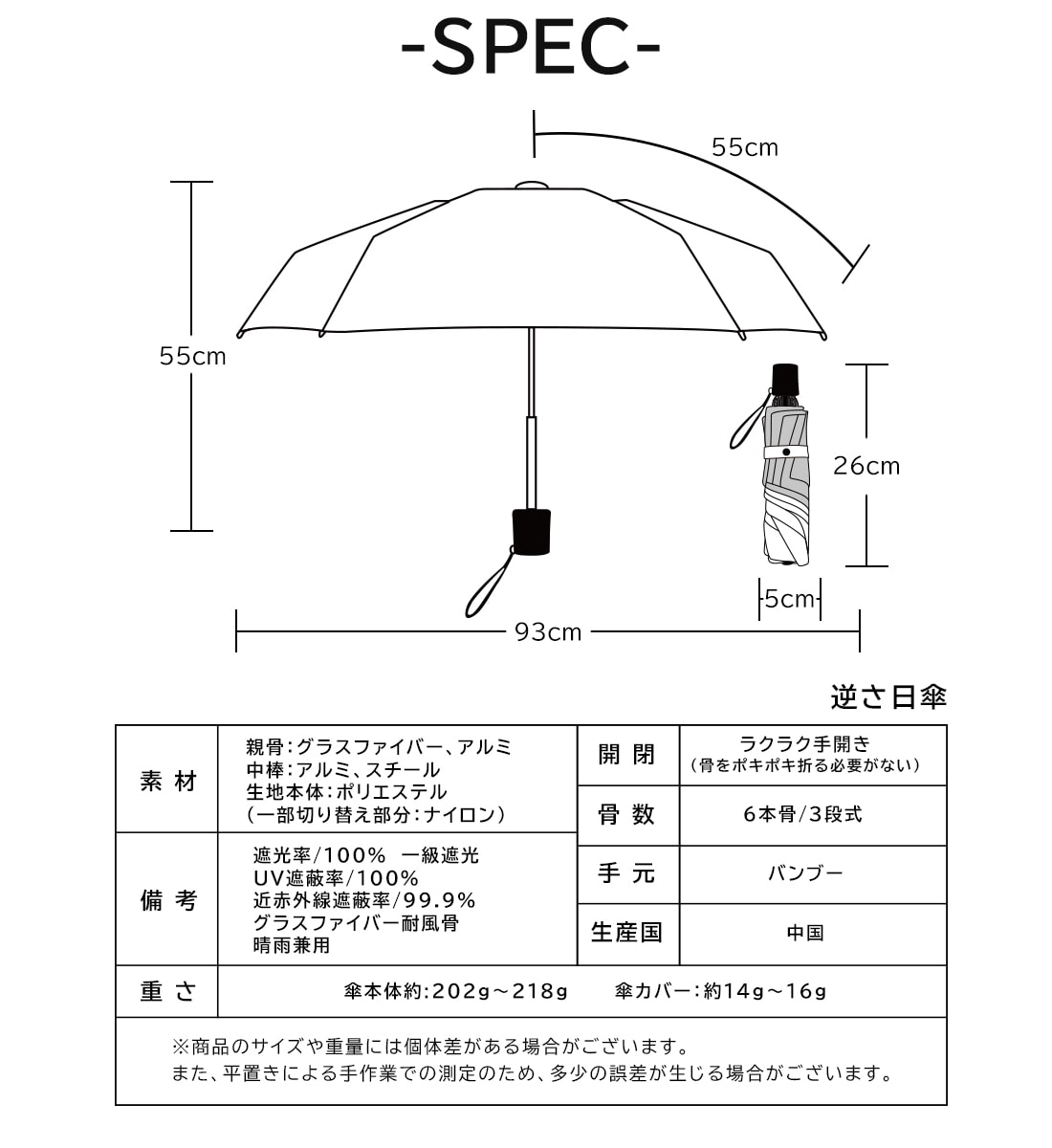 【2026新色】超軽量カーボン日傘 晴雨兼用 5本骨 U.Light~airy bicolor~