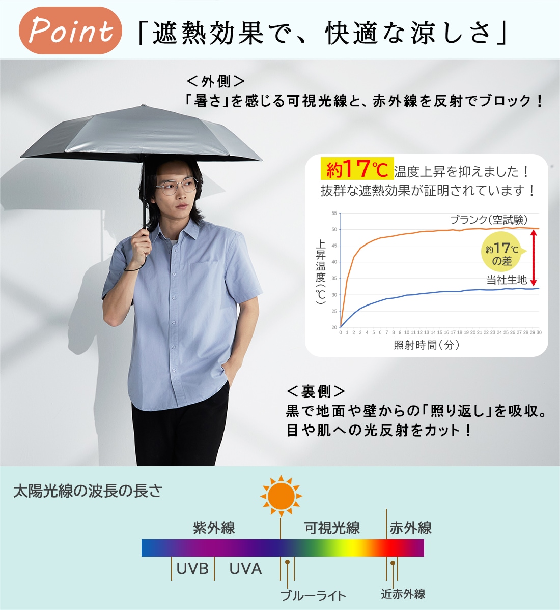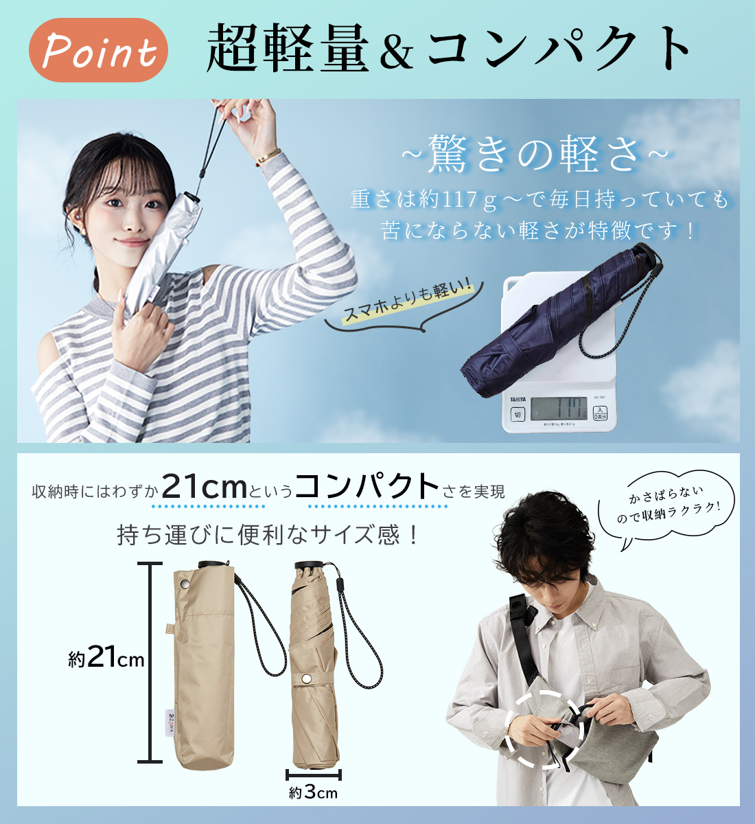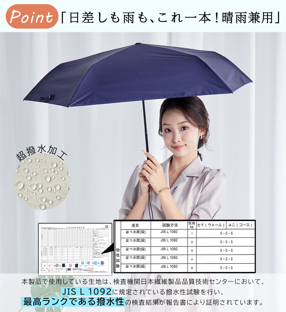 ひっくり返りにくい 超軽量 日傘 折りたたみ 晴雨兼用 U.Light~airia ameri~