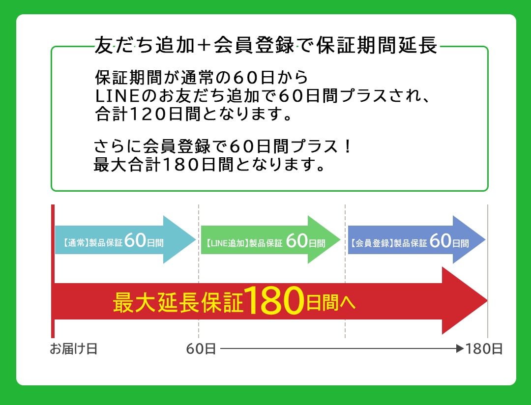 ※保証範囲は通常使用による破損・故障のみとなります。故意や過失による場合は保証対象外となりますので、予めご留意くださいませ。